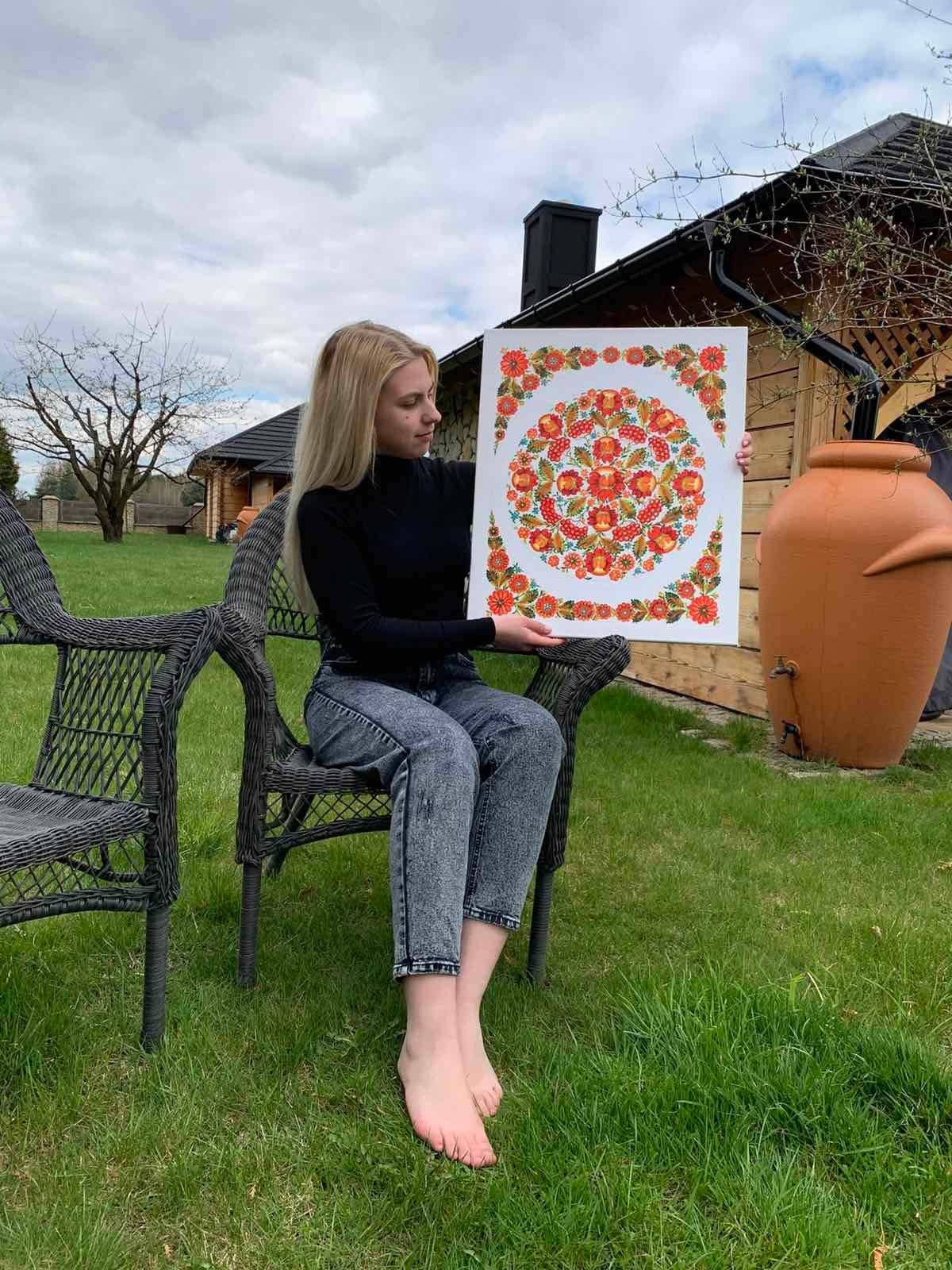 18-річна мисткиня навчається за освітньою програмою “Декоративно-прикладне мистецтво”. Творчий пошук лише упевнив, що найбільше до душі – “петриківка”. Вона органічно поєднує традиційність і новизну, дозволяє експериментувати й виробляти власний почерк.