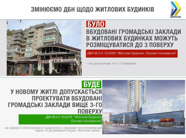 Новыми ГСН в отношении жилых домов предусмотрена возможность размещать встроенные и пристроенные помещения: магазины, кафе, салоны красоты, отделения банков на любых этажах жилых домов, но зепрещено гостинницы и хостелы. Об этом сообщает пресс-служба Минрегиона.