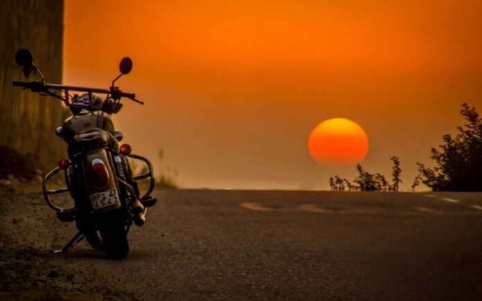 Она примостилась у него за спиной и мчится на все скорости на мотоцикле.