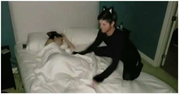 Мужчина переоделся в кота и показал типичное поведение наших любимцев среди ночи