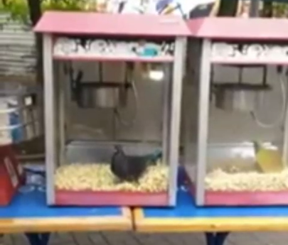 В Николаеве в бокс с попкорном забрался голубь. Птицы пыталась выбраться, но у нее ничего не получалось.