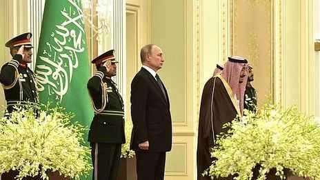 Во время визита Владимира Путина в Объединённые Арабские Эмираты местный духовой оркестр встретил президента страны-оккупанта необычным исполнением гимна.