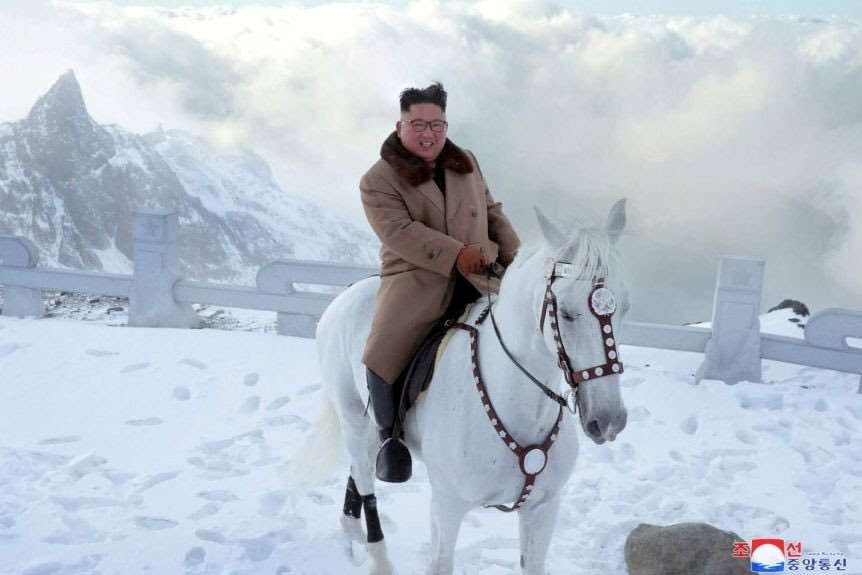 Центральное телеграфное агентство Кореи (ЦТАК) сообщило, что северокорейский лидер Ким Чен Ын покорил священную гору Пэкту верхом на белом коне и продемонстрировала фотосвидетельства. На снимках диктатор в пальто с меховым воротником скачет по заснеженной дороге, мимо холмов и позирует на фоне заснеженных вершин.