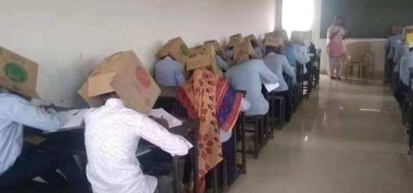В штате Карнатака в одном из колледжей ученики сдавали экзамен по химии с коробками на головах. Администратор рассказал, что учебное заведение применяло данный метод в качестве эксперимента, чтобы ученики не списывали у соседей. Работник колледжа отметил, что данный шаг был согласован со студентами, и они даже принесли свои коробки для реализации необычной идеи.