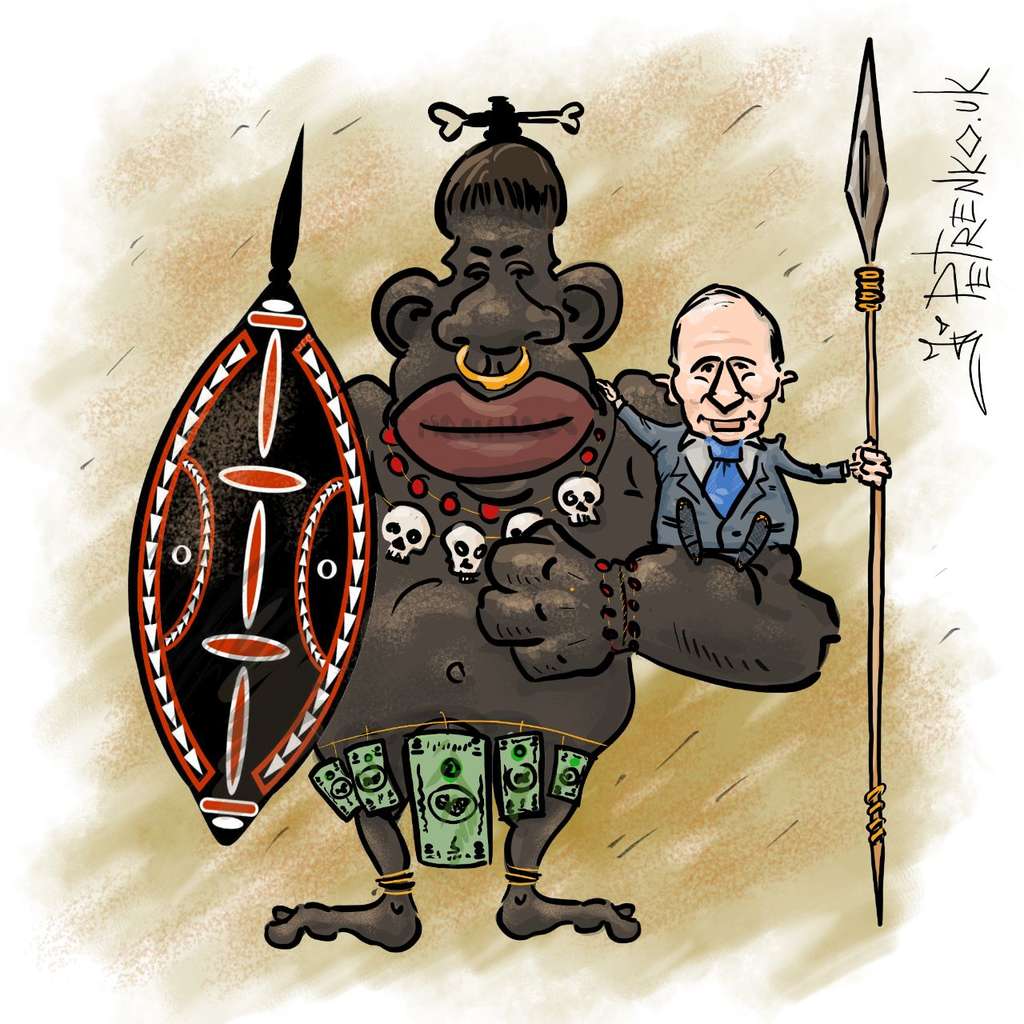 Карикатуру нарисовали в связи с дружбой Путина с Африкой, после того как в Сочи прошел форум “Россия – Африка”. Там шла речь об экономическом сотрудничестве.