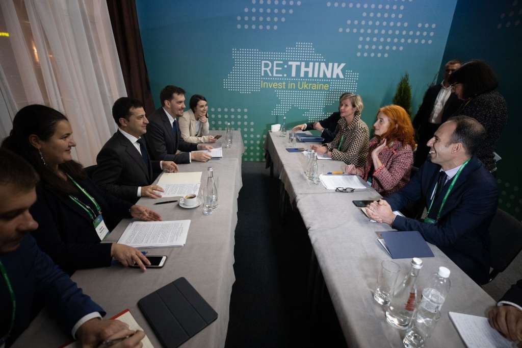 У Маріуполі в рамках інвестиційного форуму RE:THINK. Invest in Ukraine Президент Володимир Зеленський провів зустріч з віце-президентом Міжнародної фінансової корпорації Джорджиною Бейкер, директором Світового банку у справах Білорусі, Молдови та України Сату Кахконен і керівником регіонального представництва Міжнародної фінансової корпорації в Україні, Білорусі та Молдові Джейсоном Пеллмаром.