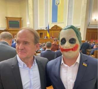 В кадре стоит Кива в маске героя комиксов Джокера, в которой он появился на пленарном заседании. Медведчука он решил превратить в персонажа из фильма ужасов «Кошмар на улице Вязов» Фреди Крюгера. «Пятничное. Кошмар «Слуг Сороса», – коротко подписал нардеп.