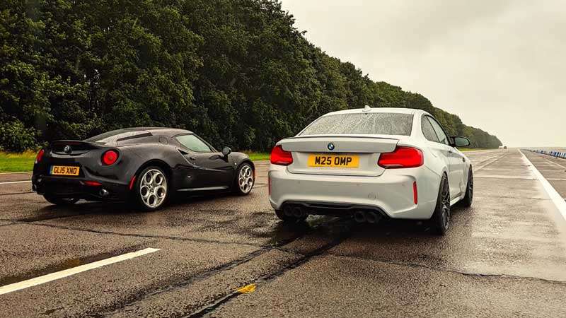 BMW M2 и Alfa Romeo 4C сравнили на мокрой трассе