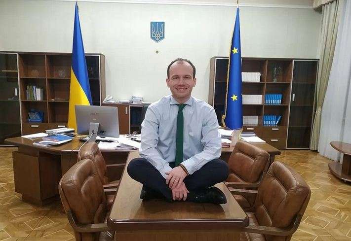 Министр юстиции Денис Малюська похвастался своими достижениями за 100 дней работы, подкрепив к посту фото, где он сидит с ногами на рабочем столе в кабинете.
