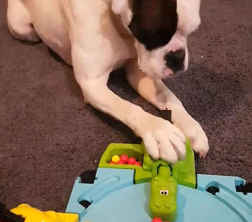 Надо сказать, что Пикси и сама не прочь научиться чему-нибудь новому, и на сей раз она освоила популярную во многих странах детскую игру «Hungry Hippos». На кадрах, снятых владельцами животного, можно видеть, как оно, нажимая лапой на рычажок, управляет своим бегемотом и заставляет его поедать шарики.