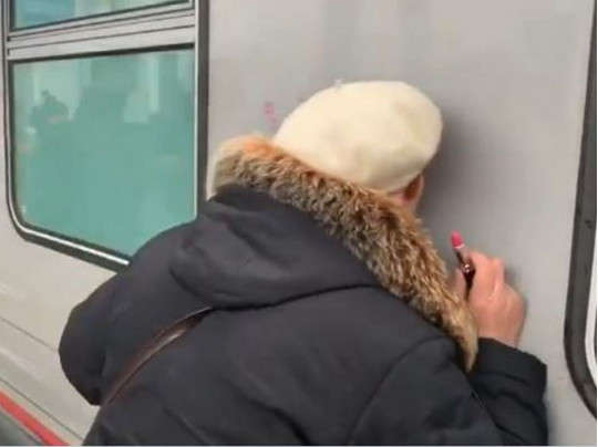 Намазав губы помадой, она «выцеловала» на вагоне слова «Крым» и «Ура».