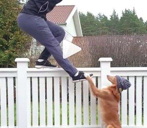Собака подстраховала своего хозяина во время тренировки