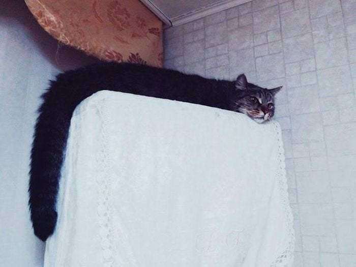 Пользователи соцсетей делятся уморительными снимками своих длинных котов и кошек, которые, кажется, могут вытягиваться до бесконечности. Довольно скоро обмен фотографиями превратился в настоящий флешмоб — хозяева питомцев соревнуются, у кого длиннее кот.