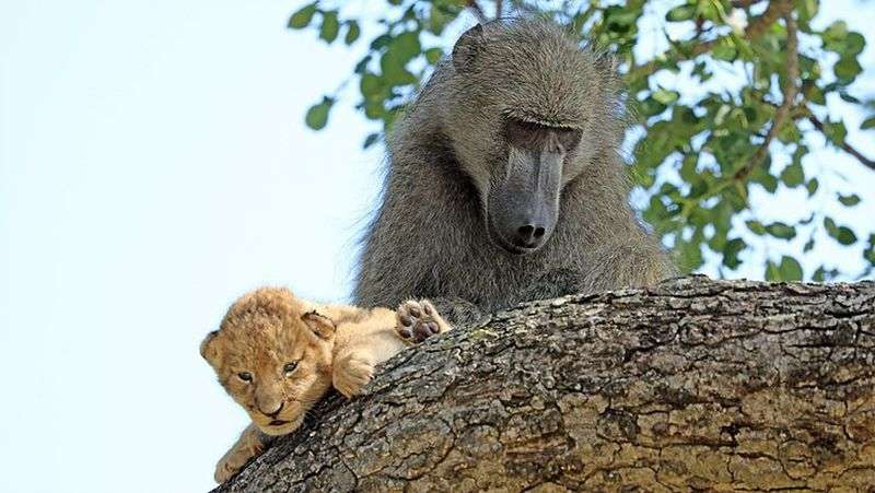 На глазах у Курта один из павианов украл львенка и продемонстрировал необычное поведение. Он заботился о нем и даже вычесывал шерсть — это называется «грумминг». Павианы живут большими стаями с высоким уровнем коммуникаций, и грумминг играет важную роль в их социальной жизни.