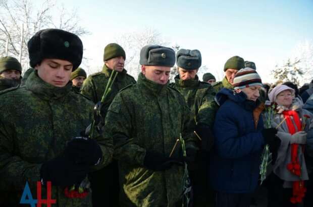 Тех, кто остался и еще продолжает работать в оккупированном городе в так называемых «государственных» учреждениях выгнали на улицы, чтобы почтить память террориста Гиви (Михаил Толстых), которого убили в оккупированном городе совсем недавно. Оккупационные власти заявили, как всегда, что это сделали украинские диверсионно-разведывательные группы.