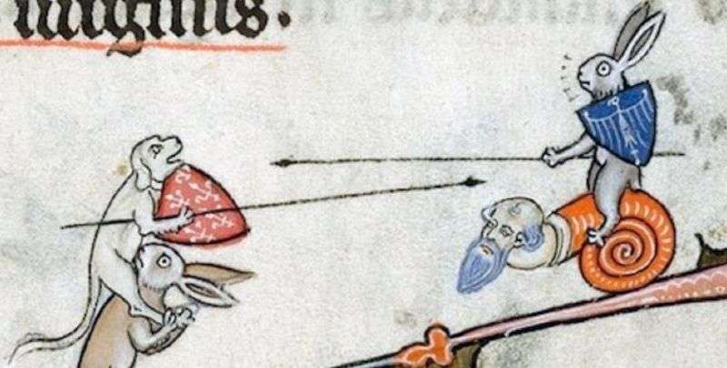 Средневековье — очень странное время. По какой-то странной причине средневековые художники любили рисовать неистовых кроликов, жестоко расправляющихся со своими противниками.