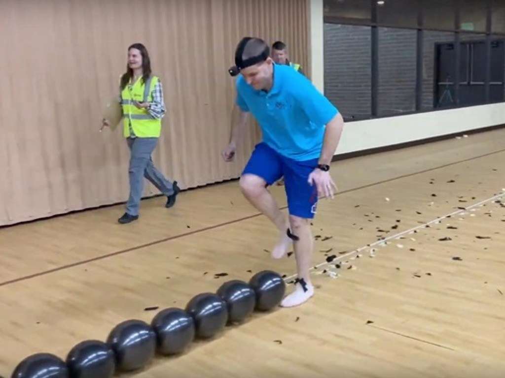 За 23 секунды лопнул ногами 100 шаров: американец побил рекорд