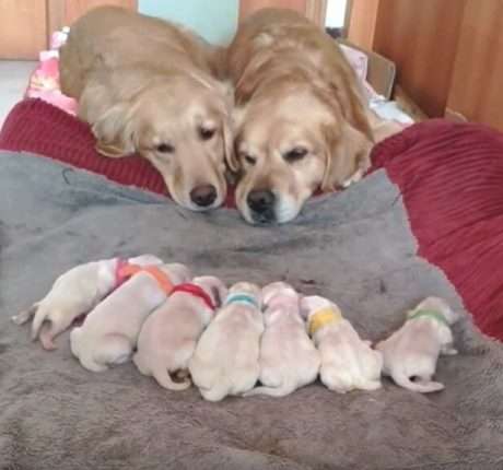 В сети показали молодых родителей, в роли которых выступили собаки породы золотистый ретривер.