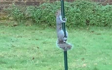 На кадрах, снятых в Бакингемшире, Англия, видно, как белка пытается вскарабкаться по шесту к кормушке. Однако владелец кормушки позаботился о том, чтобы белки держались подальше от корма, насыпанного для птиц, для чего он смазал шест маслом.