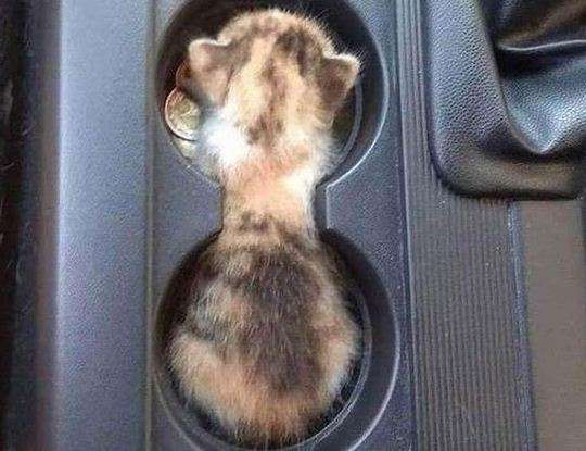 В сети появился забавный снимок с котенком в машине. Пользователей насмешило, как удобно устроился котенок в машине на том месте, куда обычно ставят стаканы.