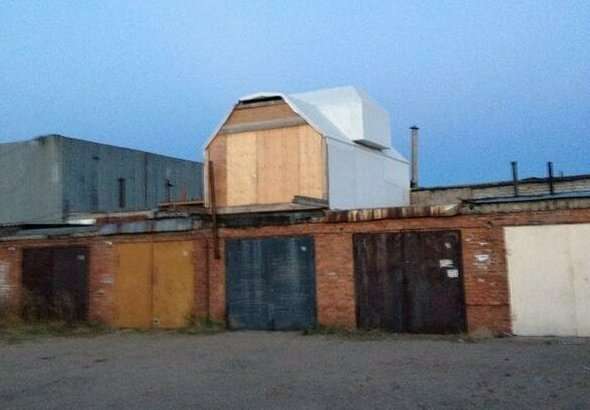 Так, на первом фото видны простые ряды кирпичных гаражей, которые есть, наверное, в каждом городе пост советского пространства. Но между ними виднеется один, с удивительным апгрейдом. Хозяин данного экземпляра достроил целый второй этаж к своему гаражу. Быть может пересиживает в нем плохое настроение супруги, кто знает.