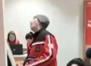 На кадрах ролика видно, как посетитель вначале внимательно читает надписи на табло банкомата, а затем его замедленное поведение обращает на себя внимание других посетителей