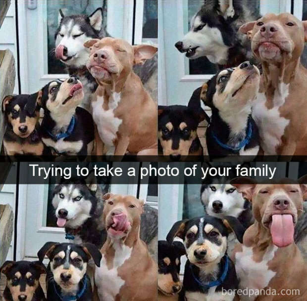 У многих людей распространена практика семейных фотографий. По всей видимости собаки также не лишены любви к семейным встречам, что и можно заметить на фото.