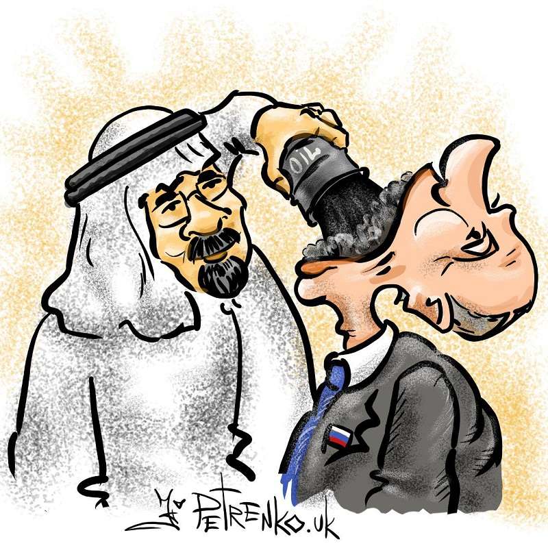 Заливает нефтью: появилась меткая карикатура на «войну» Саудовской Аравии с Россией