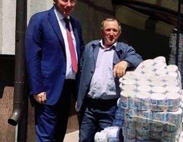 На снимке можно заметить бывшего генерального прокурора Юрия Луценко, который одет в строгий офисный костюм синего цвета, который он решил разбавить белой рубашкой и красным галстуком. Возле него также стоит мужчина старшего возраста, который ниже ростом и одет не столь официально. При этом, самой примечательной деталью фото стала тележка, которая до отвала заполнена рулонами туалетной бумаги. Сами же рулоны упакованы в полиэтилен и по высоте такая упаковка достигает живота Луценко.