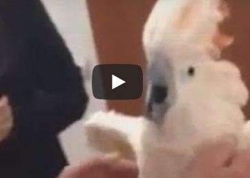 Болтливый попугай радует сеть умением говорить, целоваться и эпическим страхом перед щекоткой.