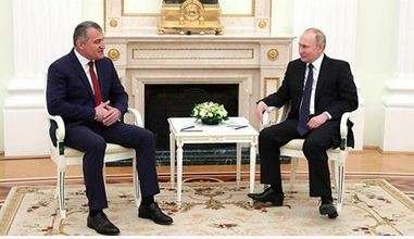 «Это — Путин сегодня в Кремле с южноосетинским «пушилиным» – каким-то Бибиловым. Что у Путина с ногами? Это спазм, это электричество в подпорках коротнуло — или просто забыли подпорки смазать?))», — написал Голобуцкий.