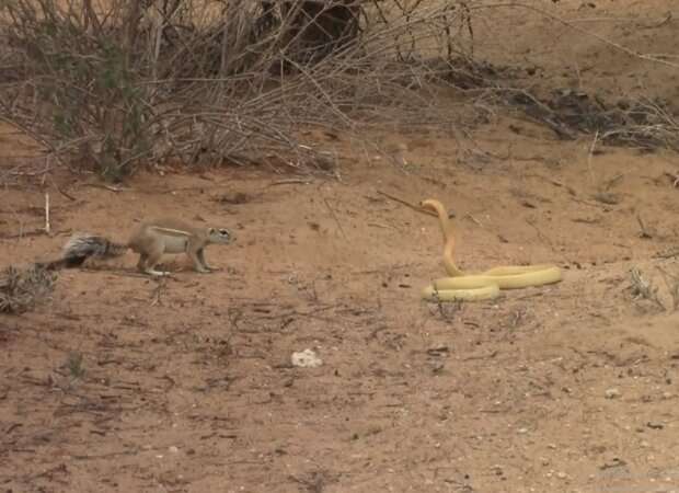 Сеть покорило видео, на котором смелая белка пытается защитить своих детенышей от кобры.