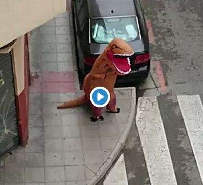 Тенденция находить неожиданные поводы для выхода на улицу в Испании пошла от одного находчивого местного жителя города Мурсия, который надел костюм динозавра и пошел гулять по закрытому на карантин городу. Полиция пресекла его перемещение.