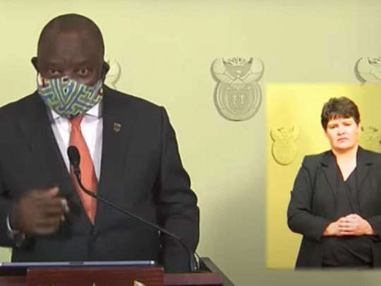 Так, во время обращения к нации в четверг, 23 апреля, он рассказал жителям страны о частичной отмене карантине с 1 мая. При этом Рамапоса хотел подчеркнуть, что, несмотря на послабление, ношение медицинских масок вне собственного дома будет обязательным.