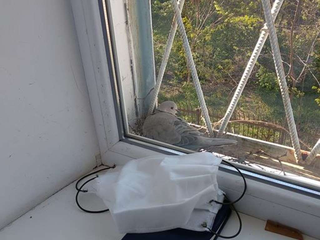 Так, молодая голубка нашла для своего гнезда очень символическое место – окно в роддоме. Между решеткой и стеклом птица высиживает два крохотных яйца, что самое интересное – под наблюдением профессионального врача.