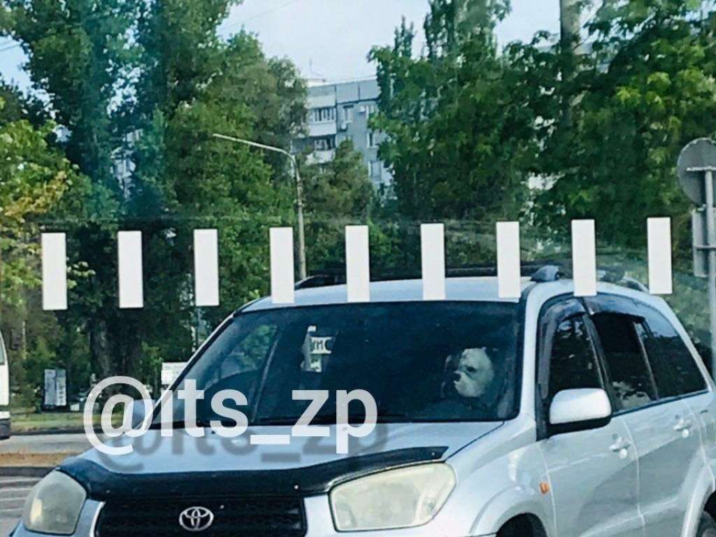 В самом центре города запорожцы запечатлели курьезный кадр – большого пса за рулем такого же большого внедорожника.
