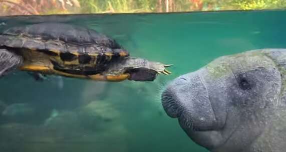 Сеть насмешила удивительная история дружбы черепахи и ламантина