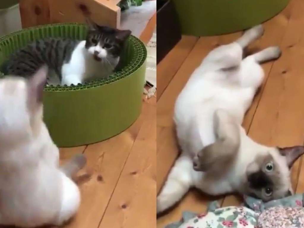 Комментаторов рассмешили действия защищавшегося питомца и реакция получившего кота: