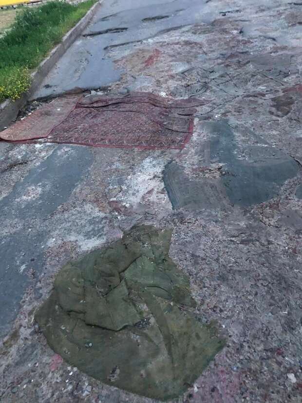 «Там рядом барахольщики стоят, это им спасибо)», «Я бы сказал, заштопали😂», «Нанотехнологии», «Евролатка», «Вот это я понимаю размах. Аж коврами дорогу выстелили. Вот это уважение к народу, аж гордость берет», «Алладины припарковались🤣», «Персидскими коврами дорогу услали, а вам всё не так… Эх, разбаловал вас Зеленский за год правления», «Это дело рук ,человека с душевно-психологическими расстройствами! Печкин его называют! Только в президенты его не стоит выбирать, одного уже выбрали!», «его ковры лежат дольше асфальта, который смыло первым дождем😁», «Все становятся душевно больными с нервными расстройствами, когда машина бьется днищем на таких дорогах!😂», – пишут под публикацией.