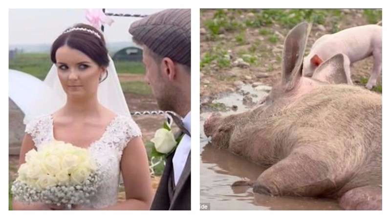 Вместо сказочной террасы и живописного места жених решил, что их свадьба должна пройти на настоящей свиноферме. Невеста так была расстроена тем, что ей придется идти к алтарю в белоснежном платье по полю из грязи в окружении «свиней-подружек».