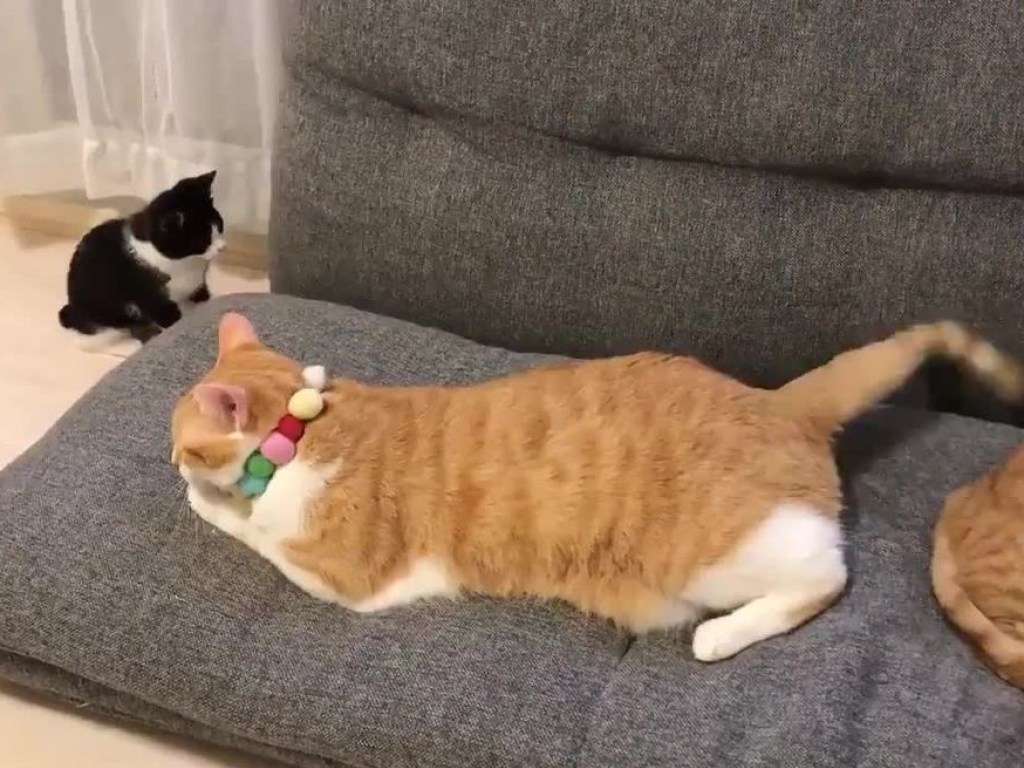 «Грозный» котенок насмешил нападением на своего собрата