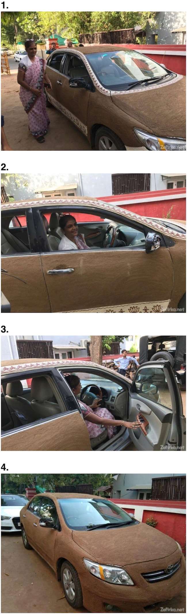 Жительница Индии, Седжал Шах, наняла двух женщин, чтобы те обмазали ее Toyota пастой из коровьего навоза.