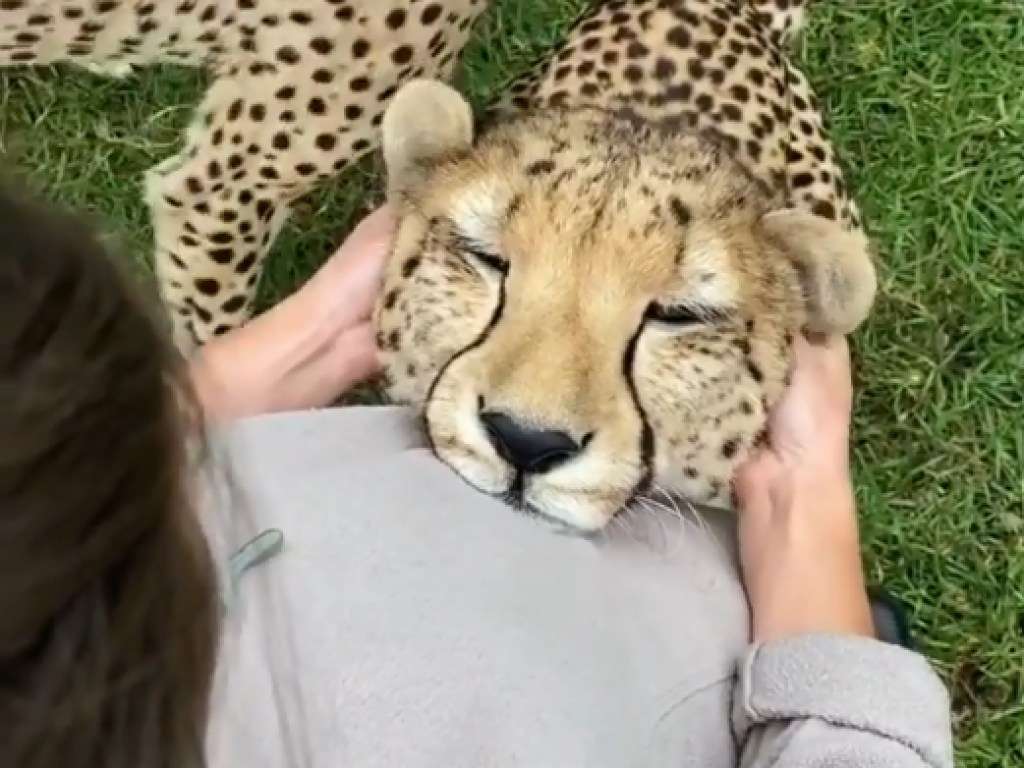В Сети набирает просмотры видео с молодым леопардом, которому девушка почесала ушко.