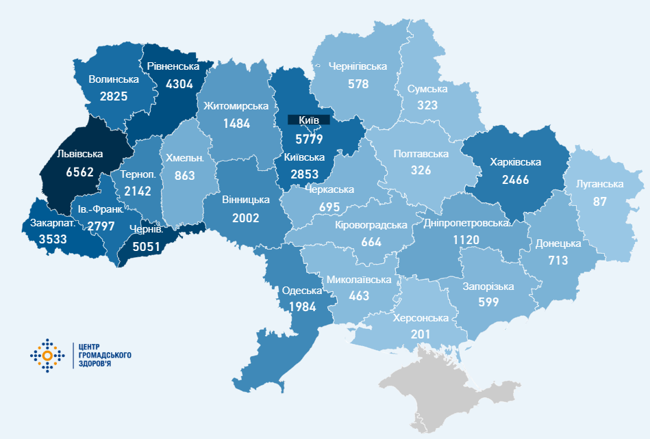 • Львовская область – 6562 случая; 170 человек скончались, 974 выздоровели;