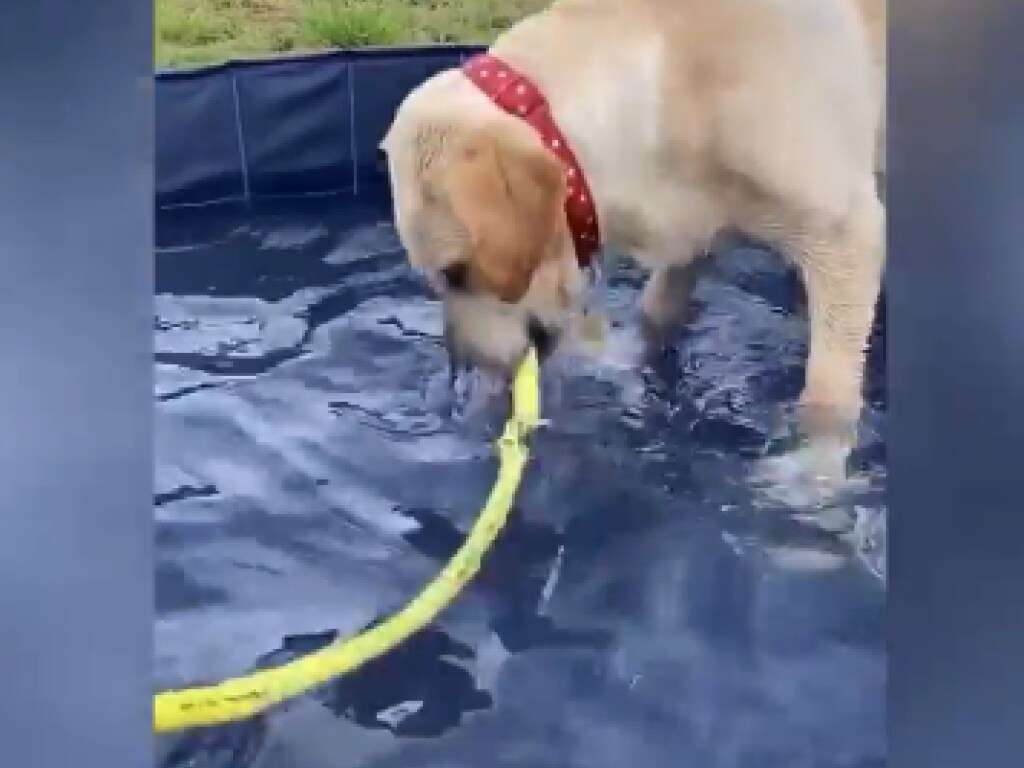 В сети появилось смешное видео с собакой. На нем лабрадор Пайпер как обычно веселилась в своем любимом бассейне, пока не заметила в воде шланг.