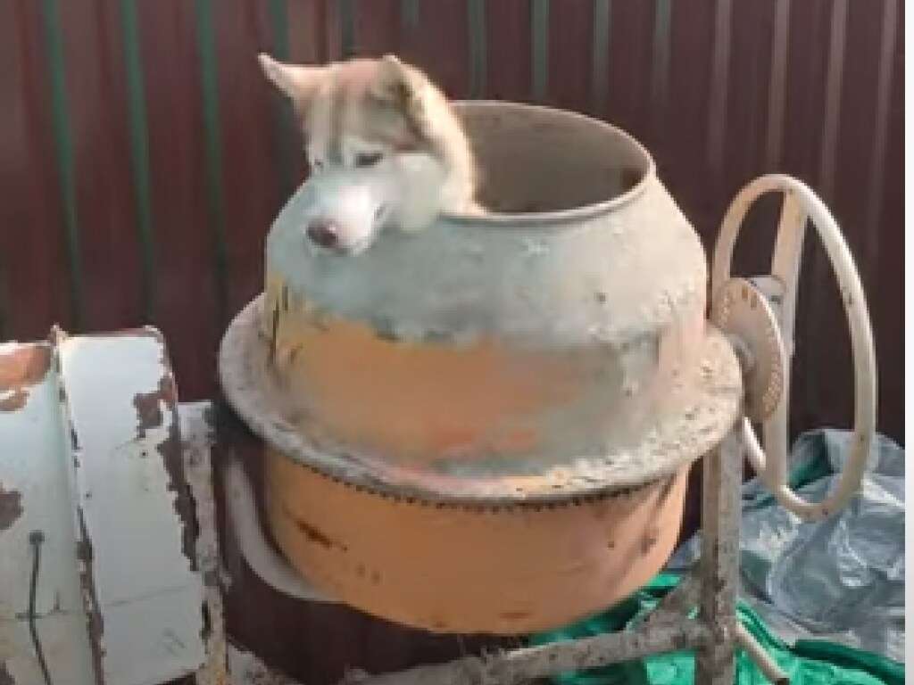 Собака каталась в бетономешалке: видео стало вирусным в Сети