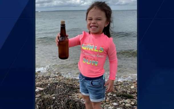 Трехлетняя девочка из американского штата Массачусетс Лила Чин нашла бутылку во время прогулки с родителями по пляжу.