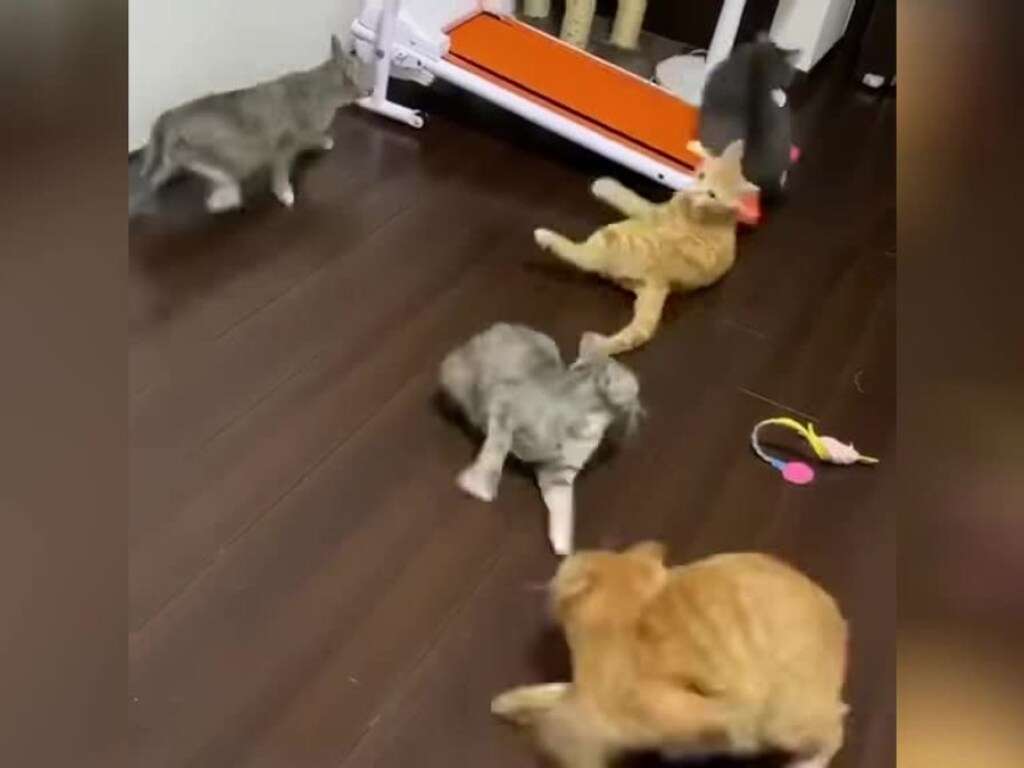 Чтобы напугать спящих котов, не нужно прикладывать много усилий: достаточно всего-то громко чихнуть. В этом на своём примере убедился хозяин пяти взрослых котов, которые за пару секунд проснулись и смылись из комнаты, услышав резкий звук.
