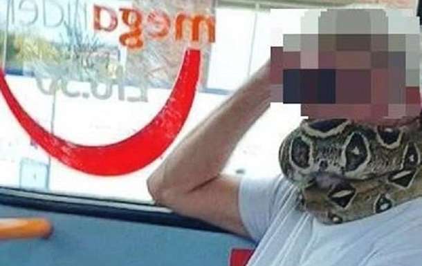 В Великобритании пассажир автобуса сумел очень сильно удивить пассажиров и водителя транспортного средства. Мужчина использовал вместо защитной маски для лица живую огромную змею, пишет Daily Mail.