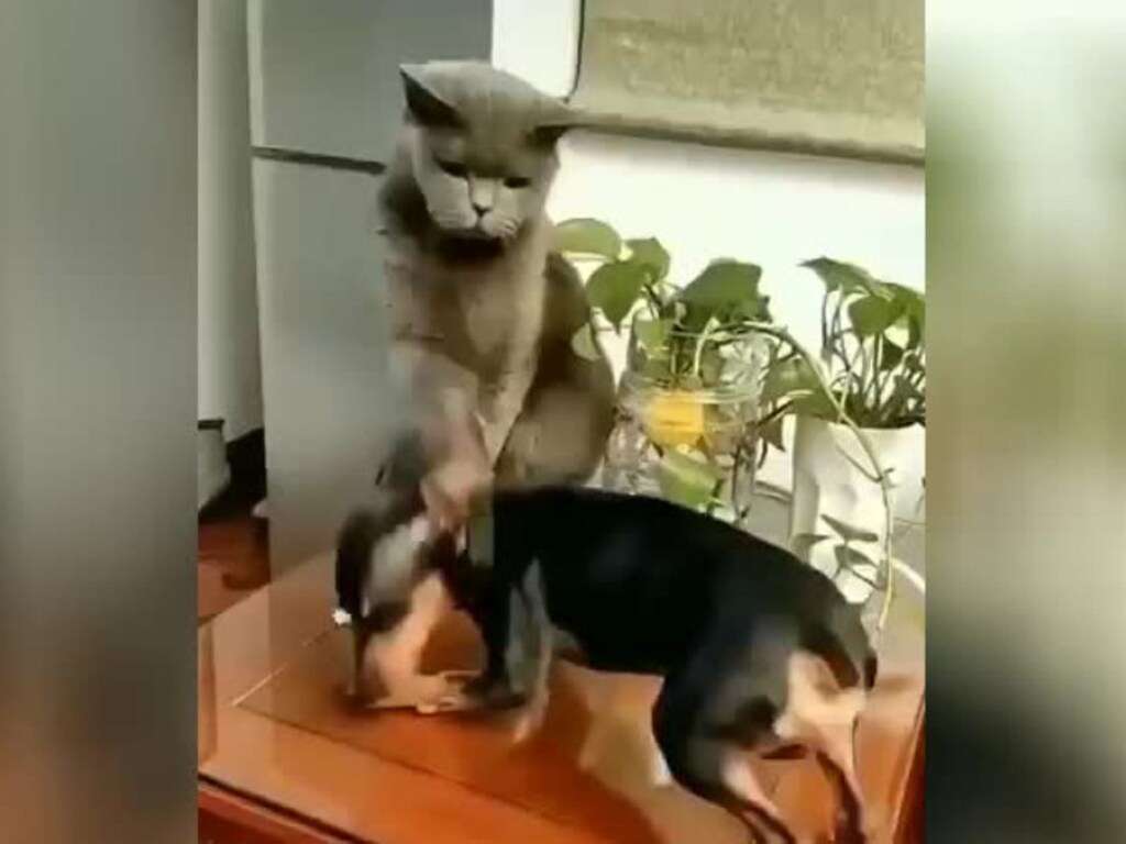 Отношения между котами и собаками — это всегда весело. Они умиляют, смешат, удивляют и даже… пугают! Например, как в случае с этим видео, на котором кошка устроила настоящую взбучку бедному собакену. Предысторию и причину такого поведения пушистой мы не знаем, поэтому до конца не уверены, дрессировка это или дедовщина.